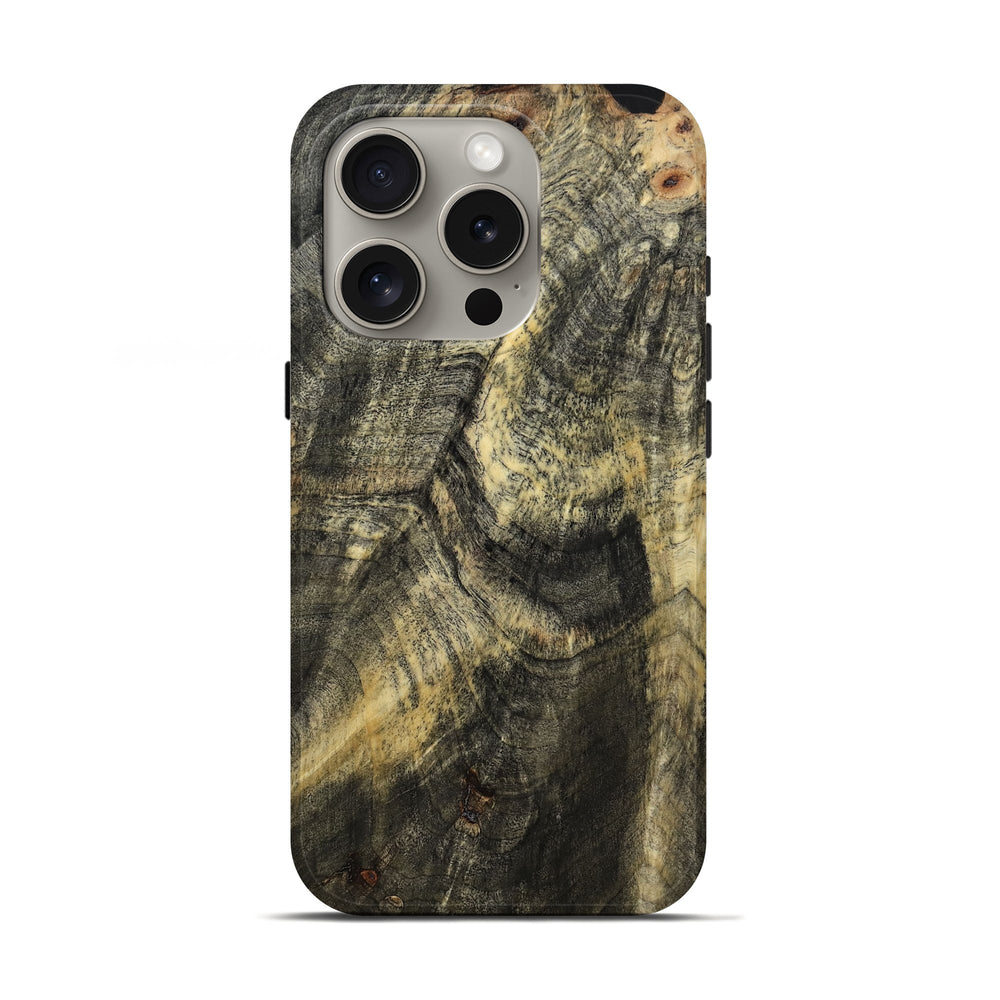 Our Live Edge cases are made from an amazing combination of stabilized wood burl and colored resin. Our stabilization process hardens the wood to protect against cracks and breaks. We do every step of the process at our shop in Northern Indiana. Perfectly fits the iPhone 16 Pro.