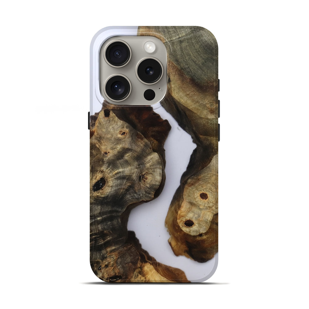 Our Live Edge cases are made from an amazing combination of stabilized wood burl and colored resin. Our stabilization process hardens the wood to protect against cracks and breaks. We do every step of the process at our shop in Northern Indiana. Perfectly fits the iPhone 16 Pro.