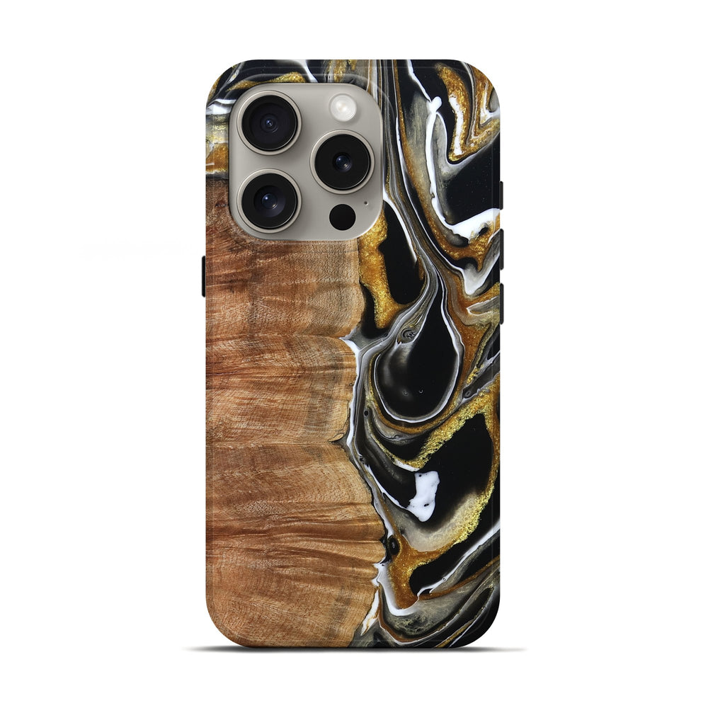 Our Live Edge cases are made from an amazing combination of stabilized wood burl and colored resin. Our stabilization process hardens the wood to protect against cracks and breaks. We do every step of the process at our shop in Northern Indiana. Perfectly fits the iPhone 16 Pro.