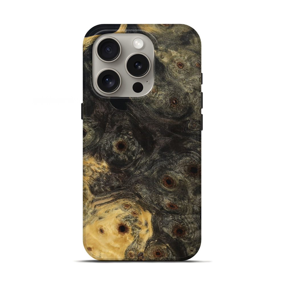 Our Live Edge cases are made from an amazing combination of stabilized wood burl and colored resin. Our stabilization process hardens the wood to protect against cracks and breaks. We do every step of the process at our shop in Northern Indiana. Perfectly fits the iPhone 16 Pro.