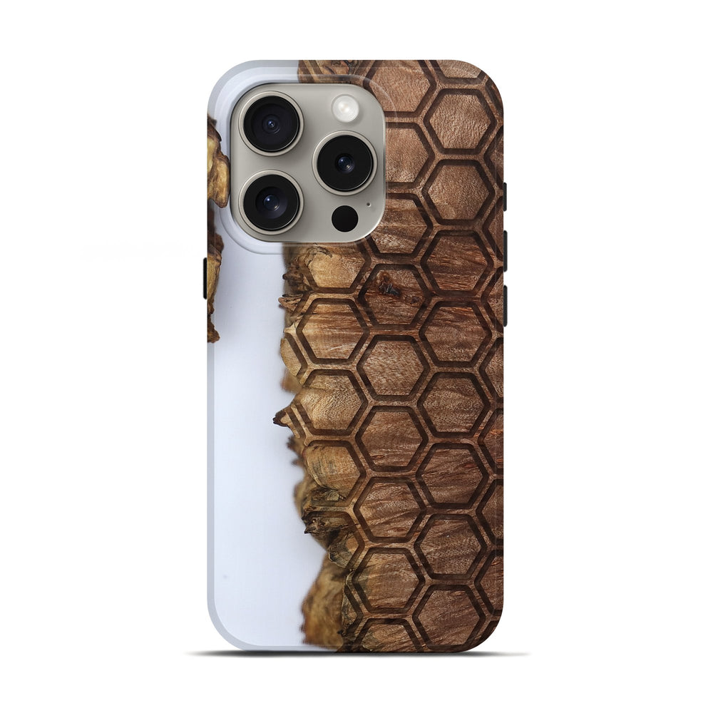 Our Live Edge cases are made from an amazing combination of stabilized wood burl and colored resin. Our stabilization process hardens the wood to protect against cracks and breaks. We do every step of the process at our shop in Northern Indiana. Perfectly fits the iPhone 16 Pro.