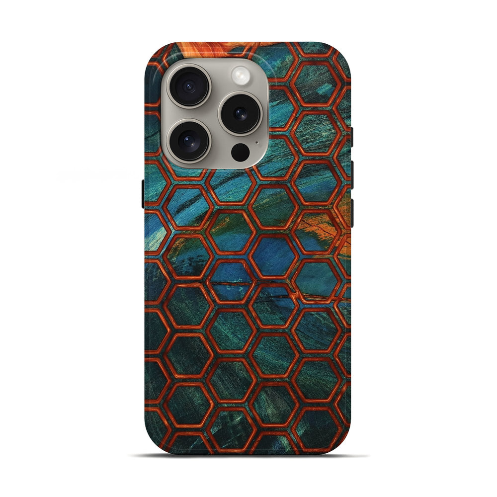 Our Live Edge cases are made from an amazing combination of stabilized wood burl and colored resin. Our stabilization process hardens the wood to protect against cracks and breaks. We do every step of the process at our shop in Northern Indiana. Perfectly fits the iPhone 16 Pro.