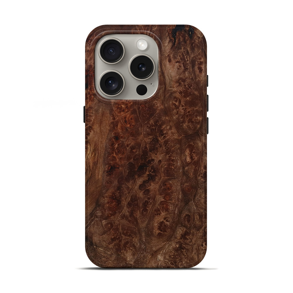 Our Live Edge cases are made from an amazing combination of stabilized wood burl and colored resin. Our stabilization process hardens the wood to protect against cracks and breaks. We do every step of the process at our shop in Northern Indiana. Perfectly fits the iPhone 16 Pro.