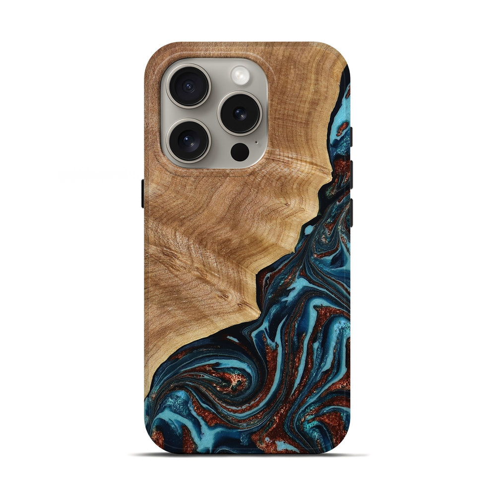 Our Live Edge cases are made from an amazing combination of stabilized wood burl and colored resin. Our stabilization process hardens the wood to protect against cracks and breaks. We do every step of the process at our shop in Northern Indiana. Perfectly fits the iPhone 16 Pro.