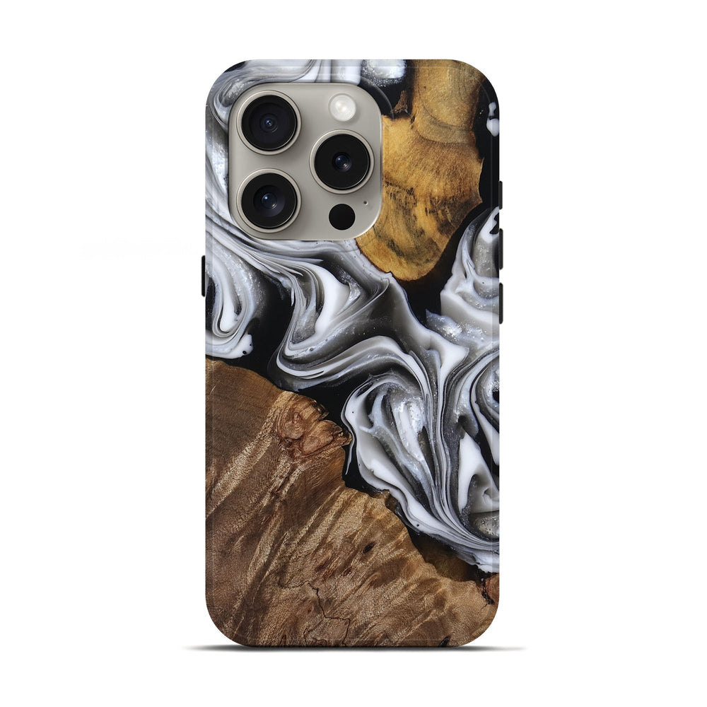 Our Live Edge cases are made from an amazing combination of stabilized wood burl and colored resin. Our stabilization process hardens the wood to protect against cracks and breaks. We do every step of the process at our shop in Northern Indiana. Perfectly fits the iPhone 16 Pro.