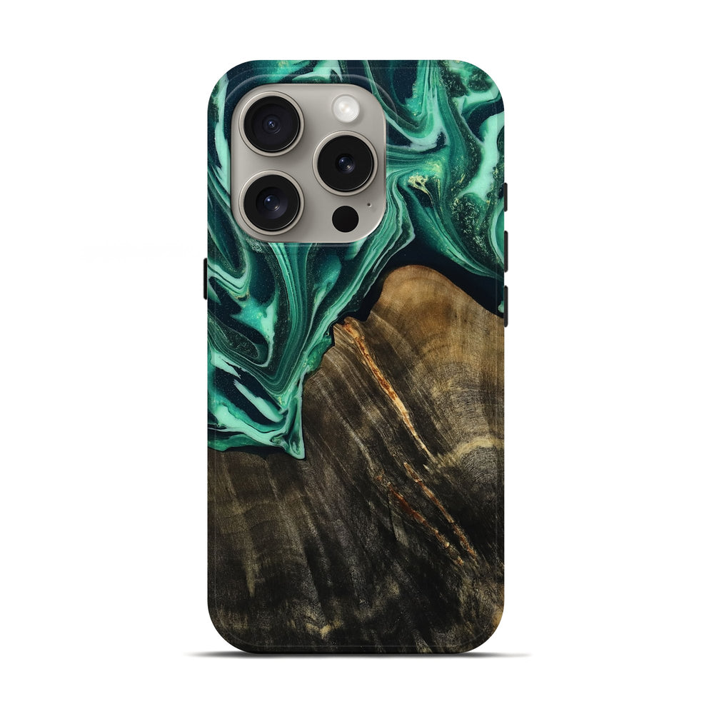 Our Live Edge cases are made from an amazing combination of stabilized wood burl and colored resin. Our stabilization process hardens the wood to protect against cracks and breaks. We do every step of the process at our shop in Northern Indiana. Perfectly fits the iPhone 16 Pro.