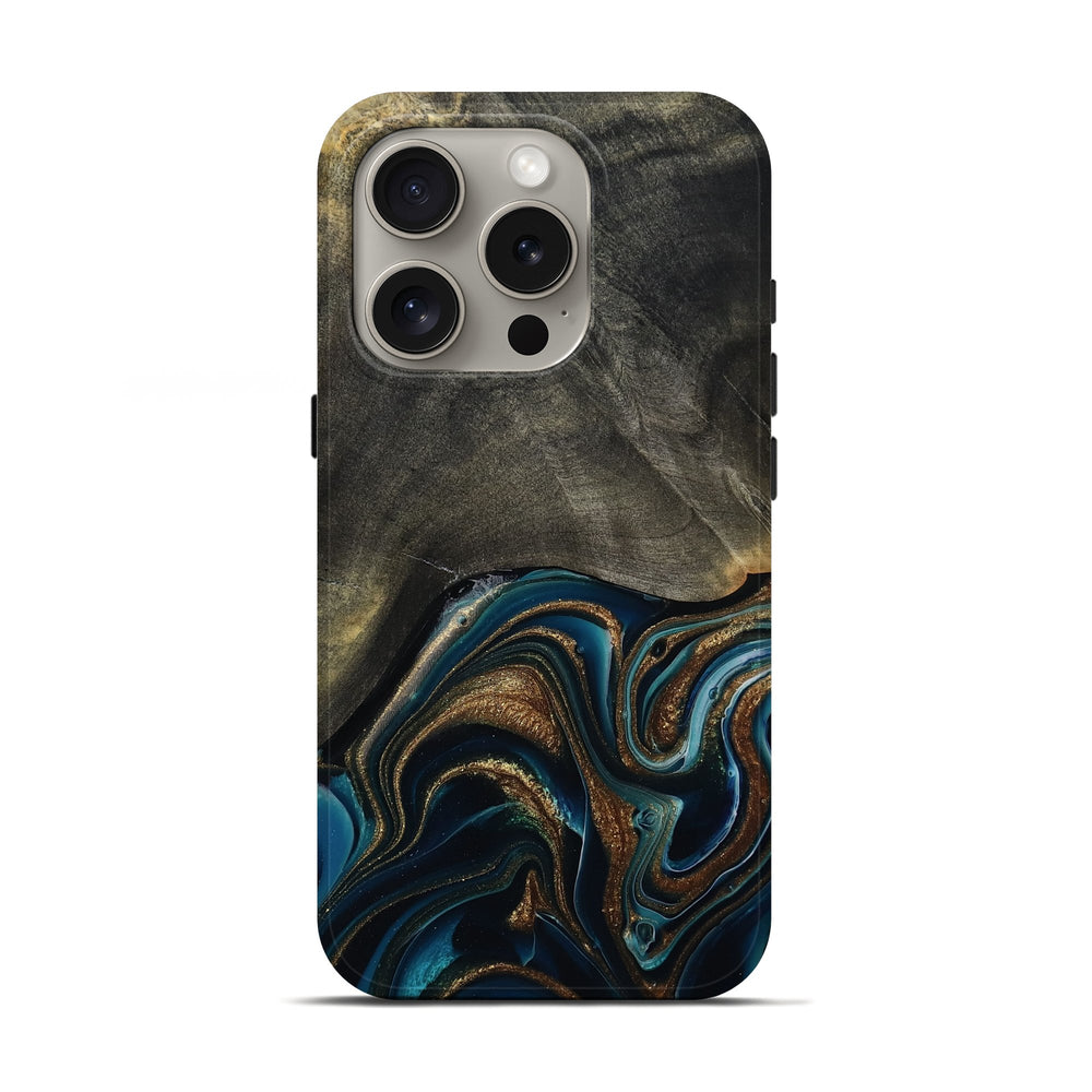 Our Live Edge cases are made from an amazing combination of stabilized wood burl and colored resin. Our stabilization process hardens the wood to protect against cracks and breaks. We do every step of the process at our shop in Northern Indiana. Perfectly fits the iPhone 16 Pro.