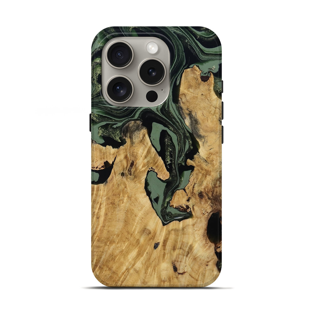 Our Live Edge cases are made from an amazing combination of stabilized wood burl and colored resin. Our stabilization process hardens the wood to protect against cracks and breaks. We do every step of the process at our shop in Northern Indiana. Perfectly fits the iPhone 16 Pro.