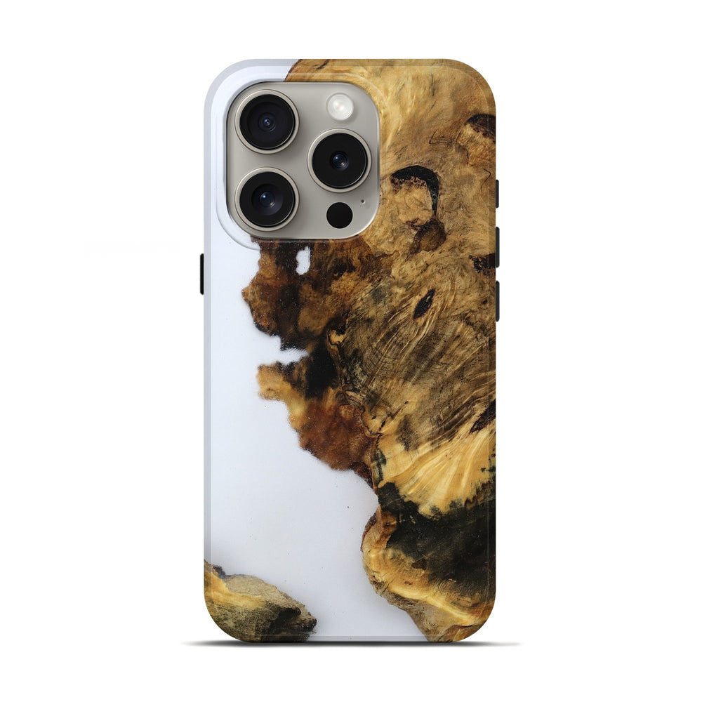 Our Live Edge cases are made from an amazing combination of stabilized wood burl and colored resin. Our stabilization process hardens the wood to protect against cracks and breaks. We do every step of the process at our shop in Northern Indiana. Perfectly fits the iPhone 16 Pro.