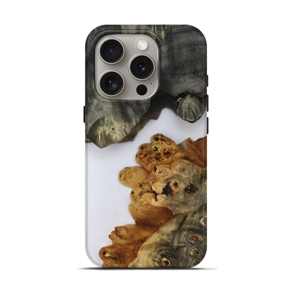 Our Live Edge cases are made from an amazing combination of stabilized wood burl and colored resin. Our stabilization process hardens the wood to protect against cracks and breaks. We do every step of the process at our shop in Northern Indiana. Perfectly fits the iPhone 16 Pro.