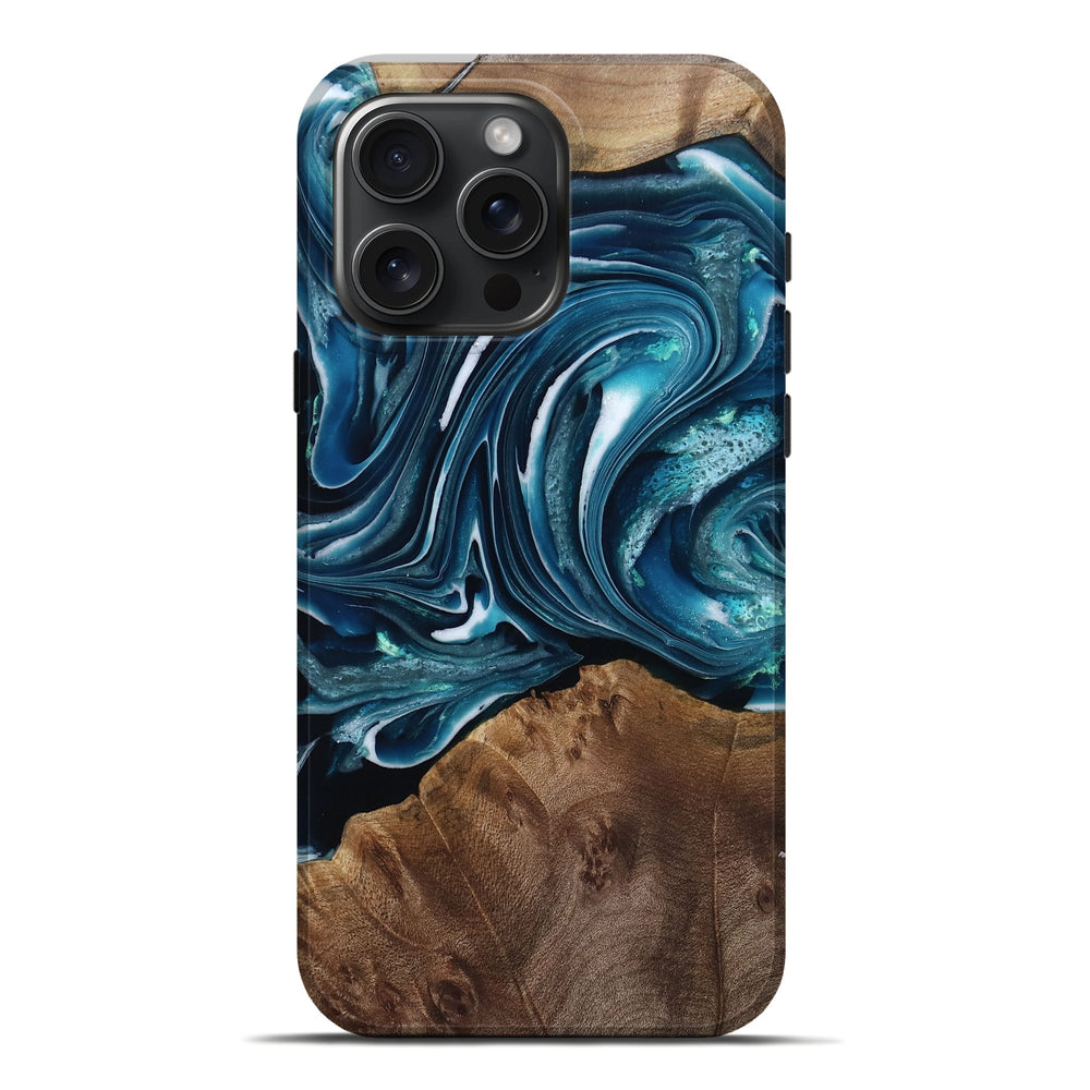 Our Live Edge cases are made from an amazing combination of stabilized wood burl and colored resin. Our stabilization process hardens the wood to protect against cracks and breaks. We do every step of the process at our shop in Northern Indiana. Perfectly fits the iPhone 16 Pro Max.