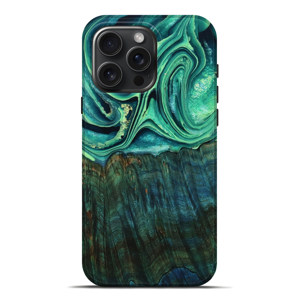 Our Live Edge cases are made from an amazing combination of stabilized wood burl and colored resin. Our stabilization process hardens the wood to protect against cracks and breaks. We do every step of the process at our shop in Northern Indiana. Perfectly fits the iPhone 16 Pro Max.