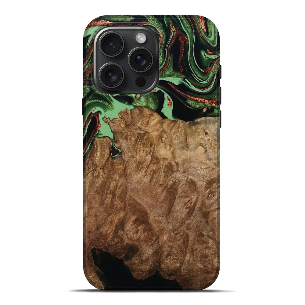 Our Live Edge cases are made from an amazing combination of stabilized wood burl and colored resin. Our stabilization process hardens the wood to protect against cracks and breaks. We do every step of the process at our shop in Northern Indiana. Perfectly fits the iPhone 16 Pro Max.