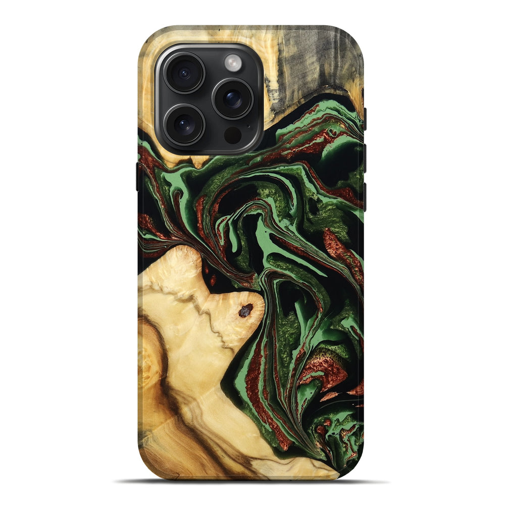 Our Live Edge cases are made from an amazing combination of stabilized wood burl and colored resin. Our stabilization process hardens the wood to protect against cracks and breaks. We do every step of the process at our shop in Northern Indiana. Perfectly fits the iPhone 16 Pro Max.