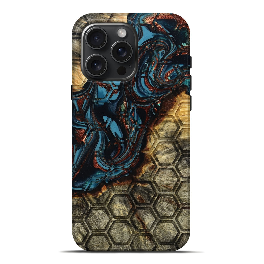 Our Live Edge cases are made from an amazing combination of stabilized wood burl and colored resin. Our stabilization process hardens the wood to protect against cracks and breaks. We do every step of the process at our shop in Northern Indiana. Perfectly fits the iPhone 16 Pro Max.
