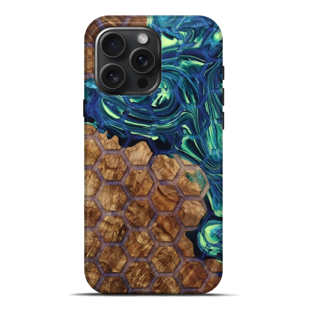 Our Live Edge cases are made from an amazing combination of stabilized wood burl and colored resin. Our stabilization process hardens the wood to protect against cracks and breaks. We do every step of the process at our shop in Northern Indiana. Perfectly fits the iPhone 16 Pro Max.