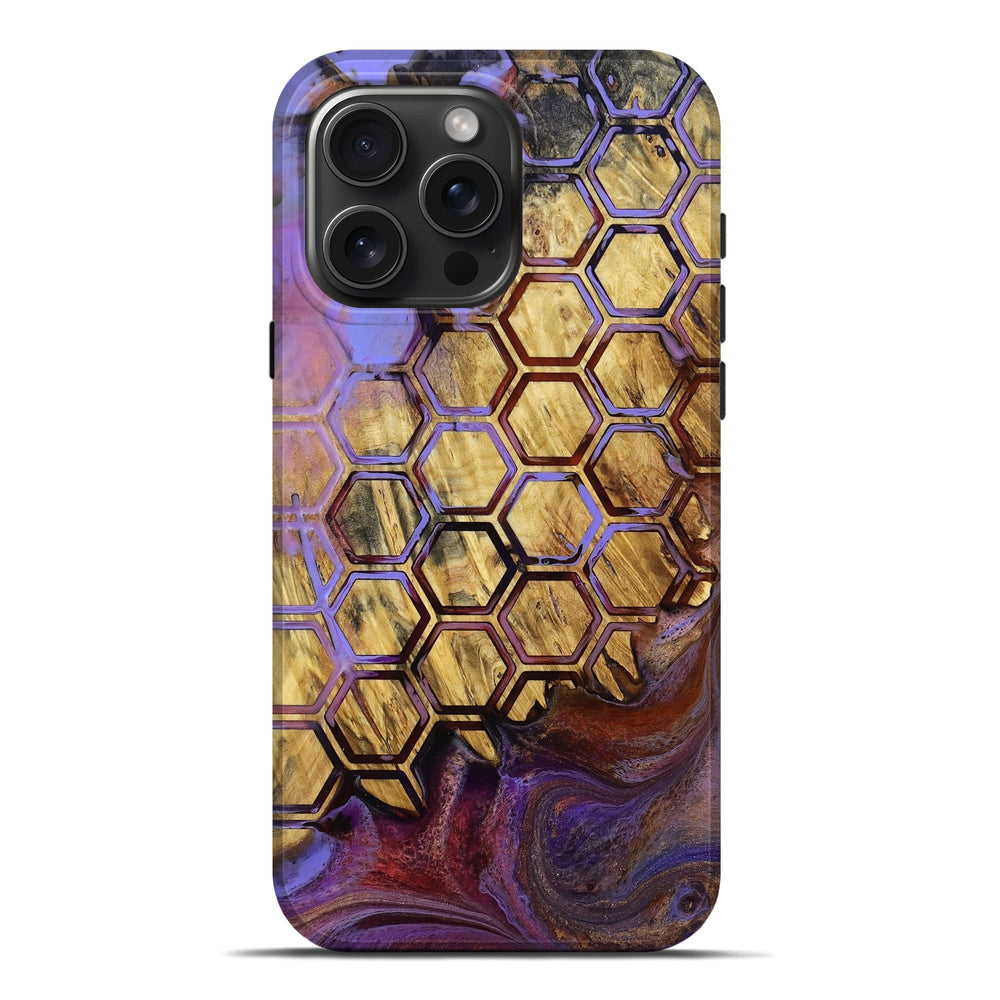 Our Live Edge cases are made from an amazing combination of stabilized wood burl and colored resin. Our stabilization process hardens the wood to protect against cracks and breaks. We do every step of the process at our shop in Northern Indiana. Perfectly fits the iPhone 16 Pro Max.