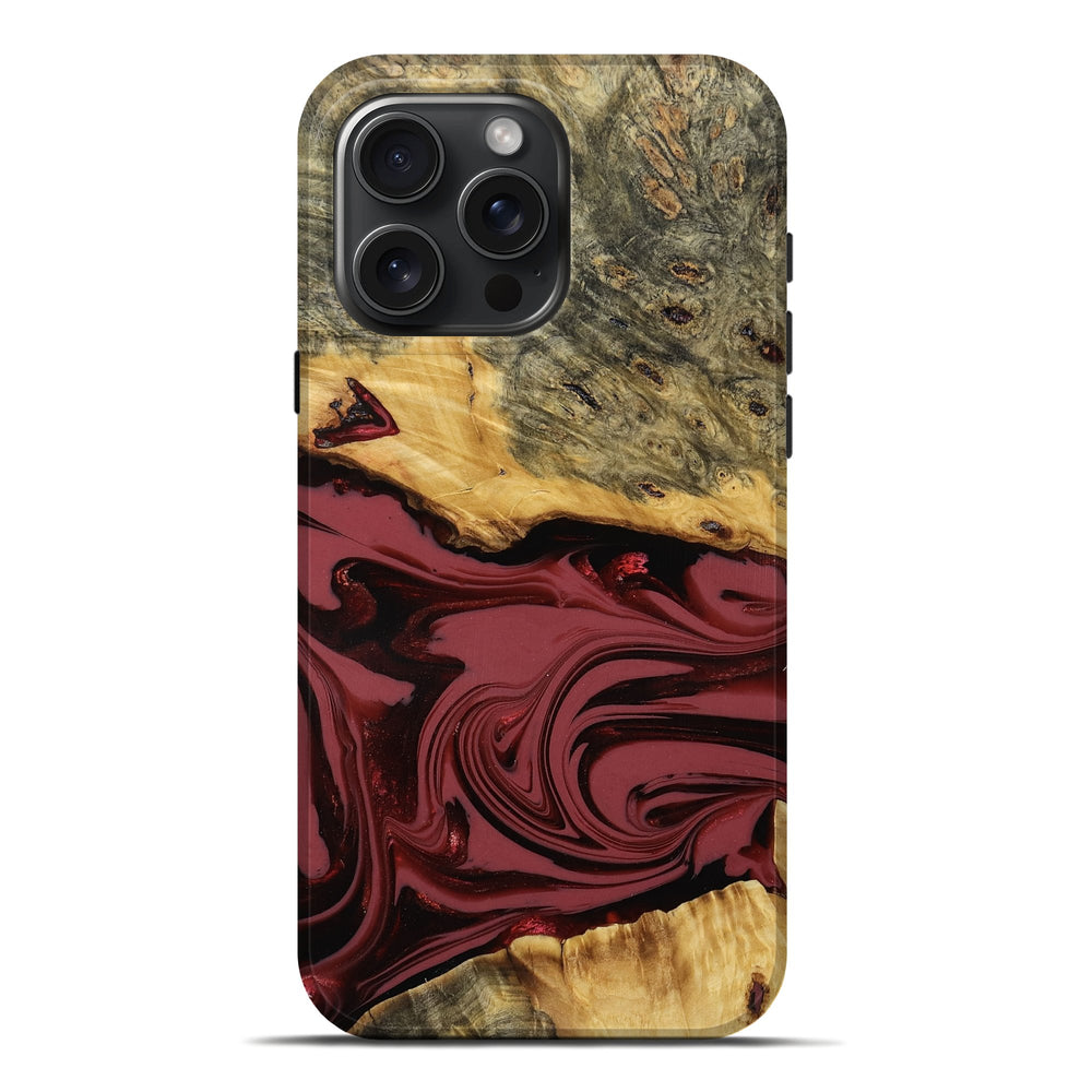 Our Live Edge cases are made from an amazing combination of stabilized wood burl and colored resin. Our stabilization process hardens the wood to protect against cracks and breaks. We do every step of the process at our shop in Northern Indiana. Perfectly fits the iPhone 16 Pro Max.