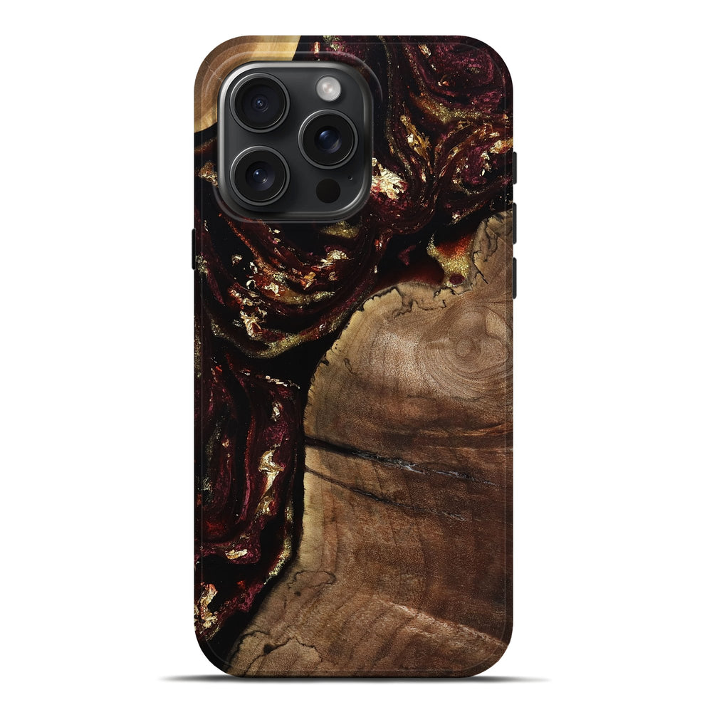 Our Live Edge cases are made from an amazing combination of stabilized wood burl and colored resin. Our stabilization process hardens the wood to protect against cracks and breaks. We do every step of the process at our shop in Northern Indiana. Perfectly fits the iPhone 16 Pro Max.