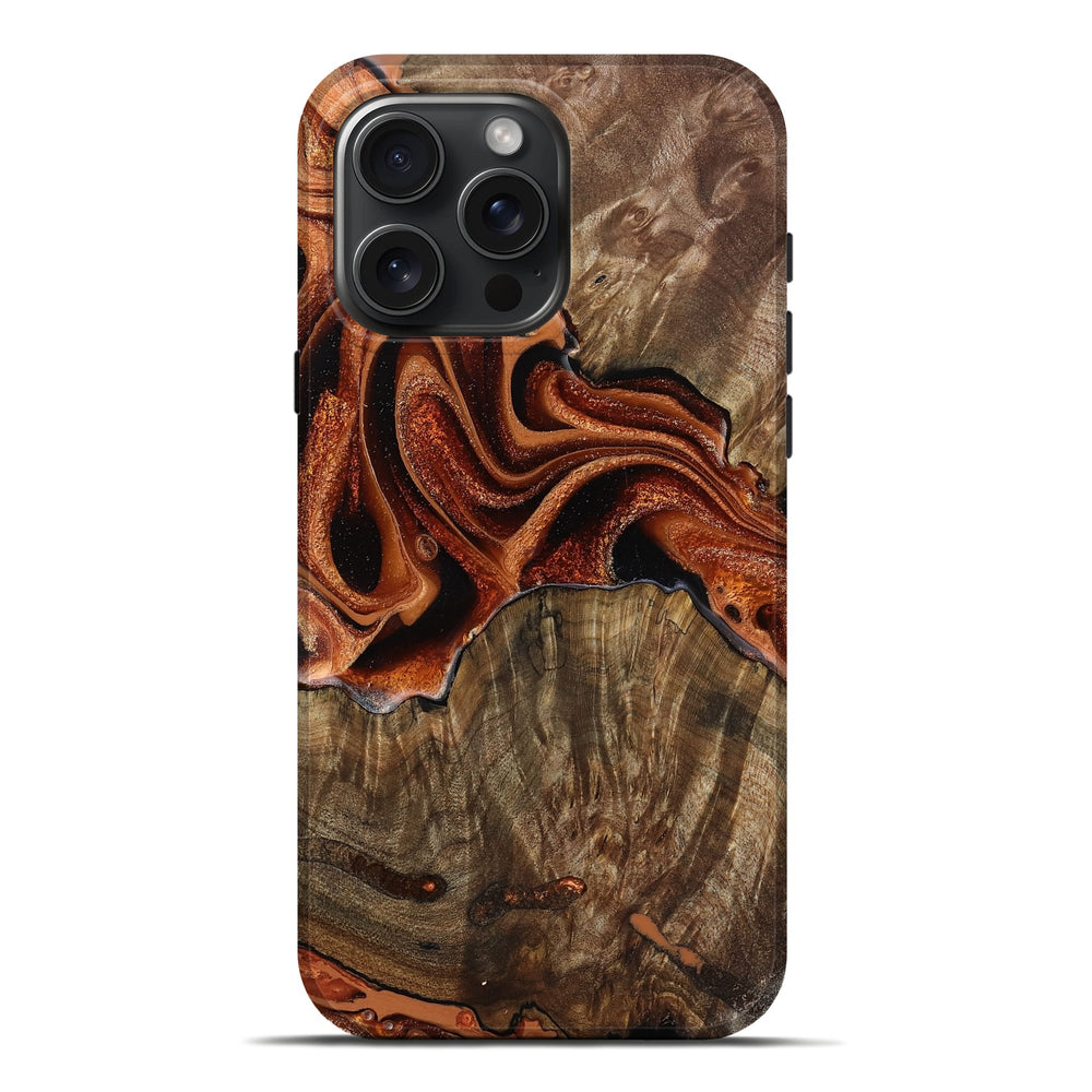 Our Live Edge cases are made from an amazing combination of stabilized wood burl and colored resin. Our stabilization process hardens the wood to protect against cracks and breaks. We do every step of the process at our shop in Northern Indiana. Perfectly fits the iPhone 16 Pro Max.