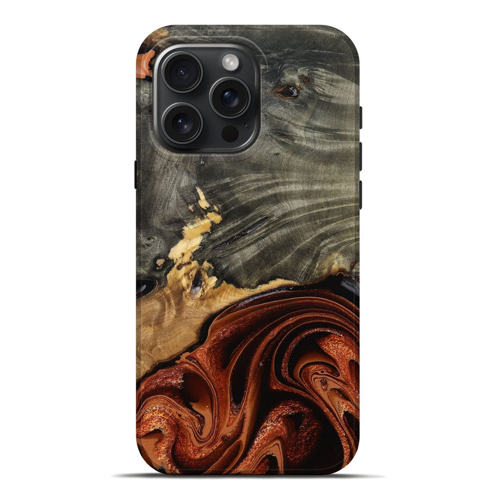 Our Live Edge cases are made from an amazing combination of stabilized wood burl and colored resin. Our stabilization process hardens the wood to protect against cracks and breaks. We do every step of the process at our shop in Northern Indiana. Perfectly fits the iPhone 16 Pro Max.