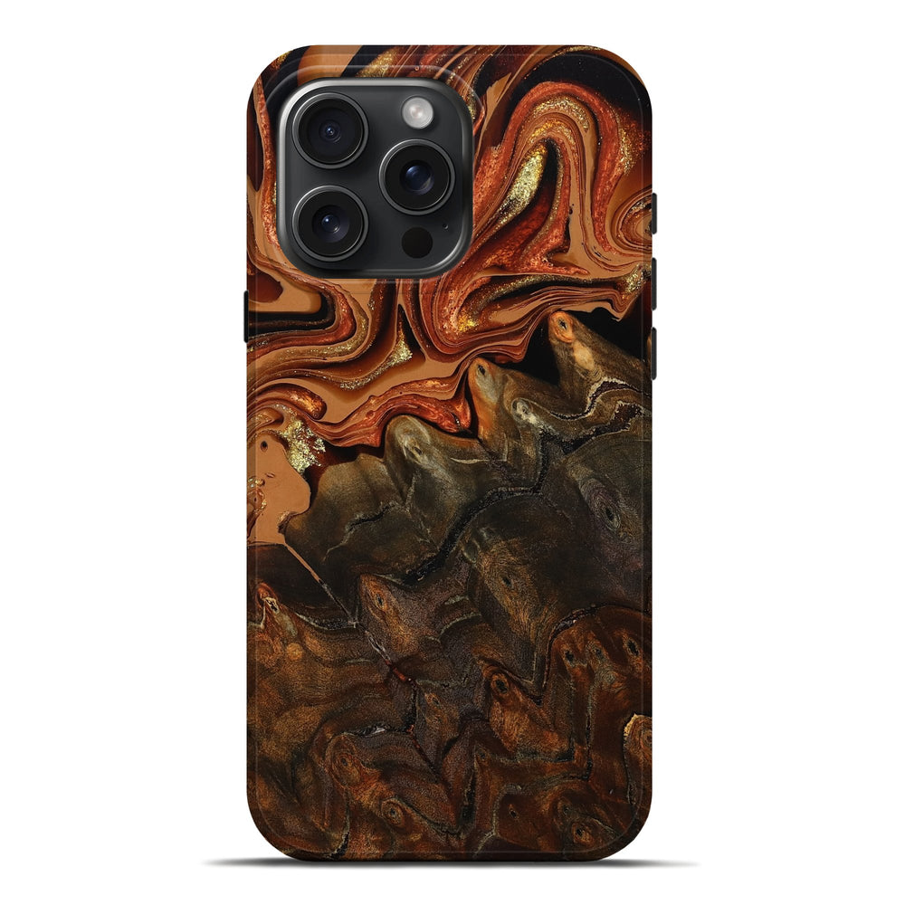 Our Live Edge cases are made from an amazing combination of stabilized wood burl and colored resin. Our stabilization process hardens the wood to protect against cracks and breaks. We do every step of the process at our shop in Northern Indiana. Perfectly fits the iPhone 16 Pro Max.