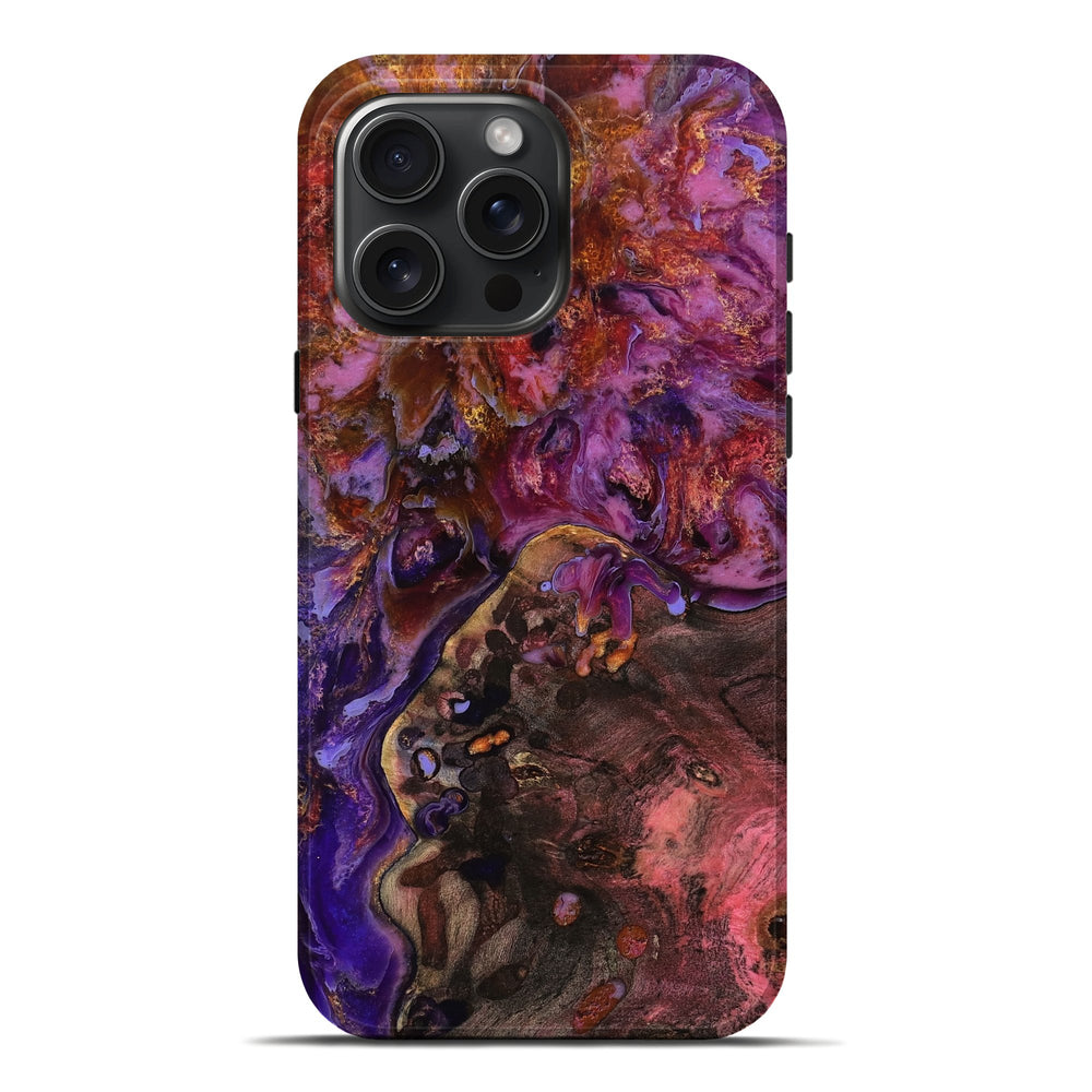 Our Live Edge cases are made from an amazing combination of stabilized wood burl and colored resin. Our stabilization process hardens the wood to protect against cracks and breaks. We do every step of the process at our shop in Northern Indiana. Perfectly fits the iPhone 16 Pro Max.