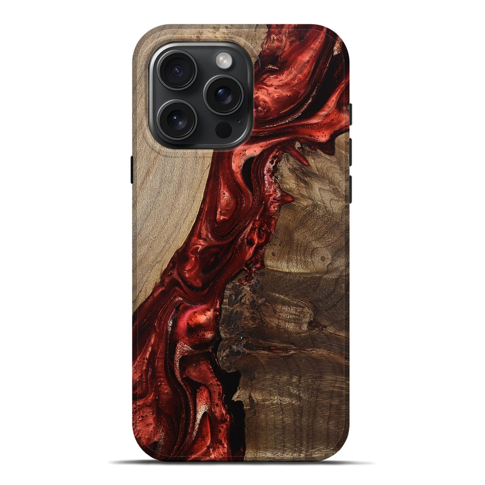 Our Live Edge cases are made from an amazing combination of stabilized wood burl and colored resin. Our stabilization process hardens the wood to protect against cracks and breaks. We do every step of the process at our shop in Northern Indiana. Perfectly fits the iPhone 16 Pro Max.