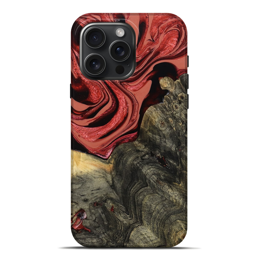 Our Live Edge cases are made from an amazing combination of stabilized wood burl and colored resin. Our stabilization process hardens the wood to protect against cracks and breaks. We do every step of the process at our shop in Northern Indiana. Perfectly fits the iPhone 16 Pro Max.