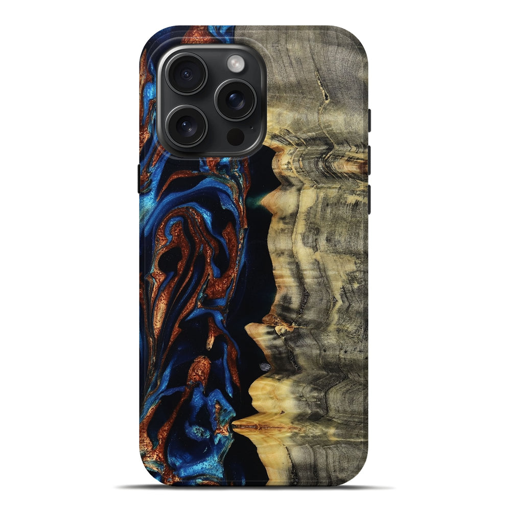 Our Live Edge cases are made from an amazing combination of stabilized wood burl and colored resin. Our stabilization process hardens the wood to protect against cracks and breaks. We do every step of the process at our shop in Northern Indiana. Perfectly fits the iPhone 16 Pro Max.