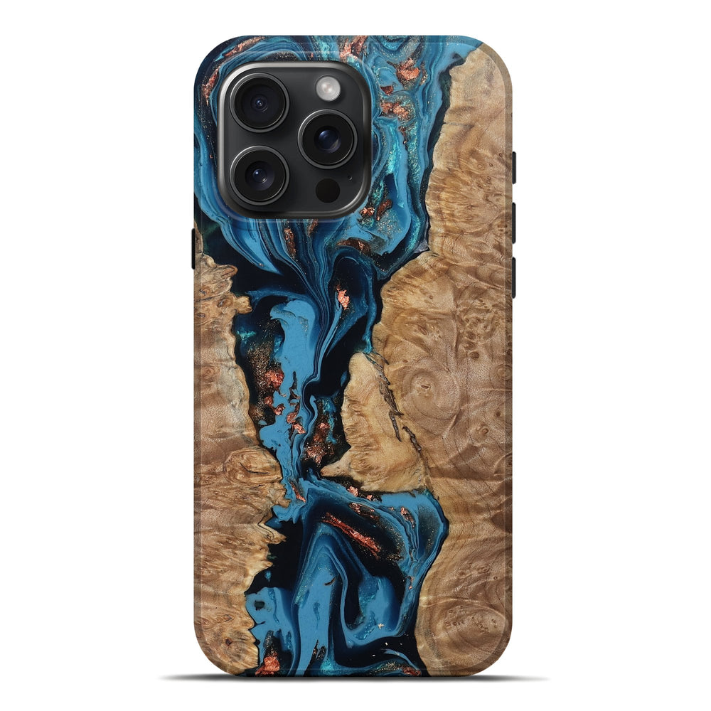 Our Live Edge cases are made from an amazing combination of stabilized wood burl and colored resin. Our stabilization process hardens the wood to protect against cracks and breaks. We do every step of the process at our shop in Northern Indiana. Perfectly fits the iPhone 16 Pro Max.