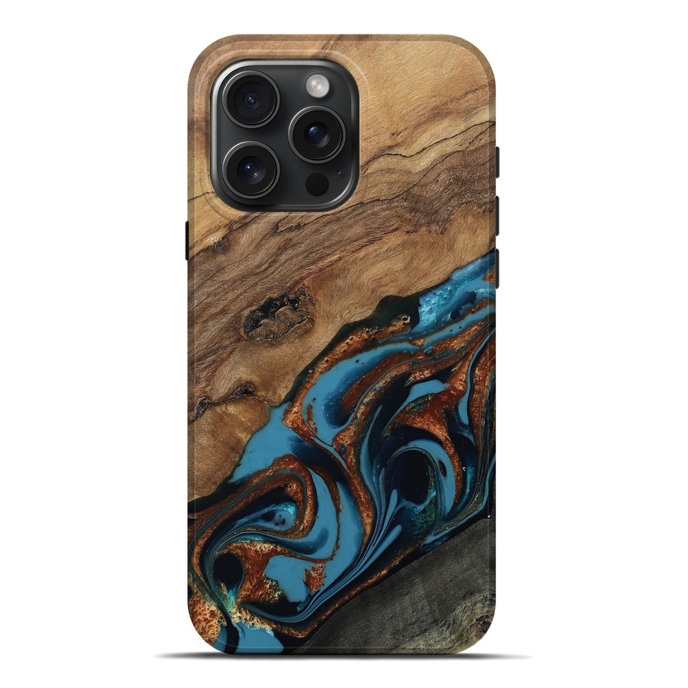 Our Live Edge cases are made from an amazing combination of stabilized wood burl and colored resin. Our stabilization process hardens the wood to protect against cracks and breaks. We do every step of the process at our shop in Northern Indiana. Perfectly fits the iPhone 16 Pro Max.