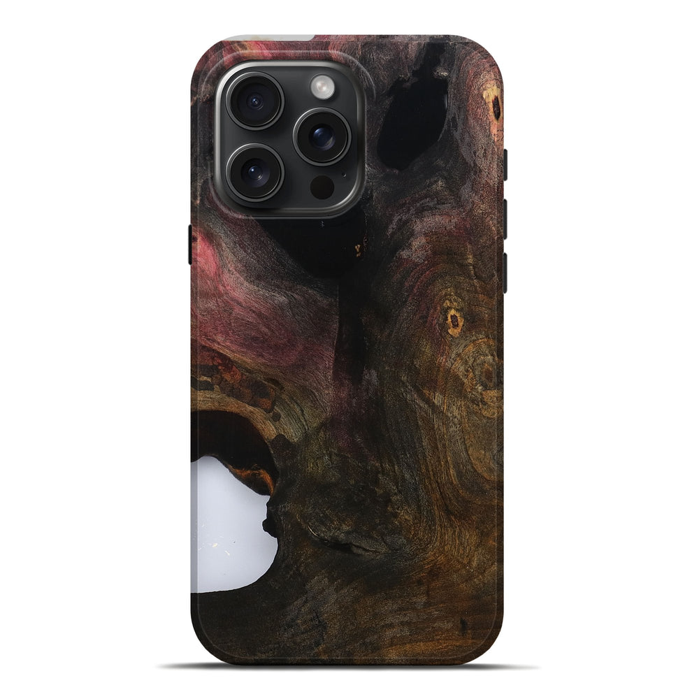 Our Live Edge cases are made from an amazing combination of stabilized wood burl and colored resin. Our stabilization process hardens the wood to protect against cracks and breaks. We do every step of the process at our shop in Northern Indiana. Perfectly fits the iPhone 16 Pro Max.