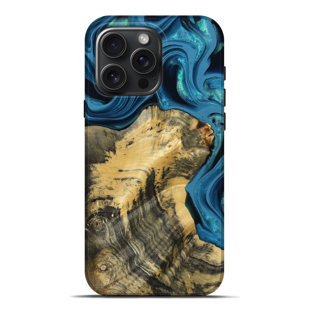 Our Live Edge cases are made from an amazing combination of stabilized wood burl and colored resin. Our stabilization process hardens the wood to protect against cracks and breaks. We do every step of the process at our shop in Northern Indiana. Perfectly fits the iPhone 16 Pro Max.