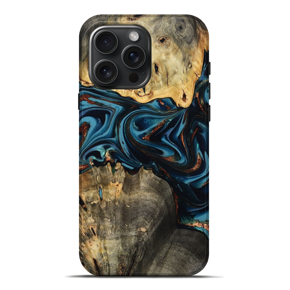 Our Live Edge cases are made from an amazing combination of stabilized wood burl and colored resin. Our stabilization process hardens the wood to protect against cracks and breaks. We do every step of the process at our shop in Northern Indiana. Perfectly fits the iPhone 16 Pro Max.