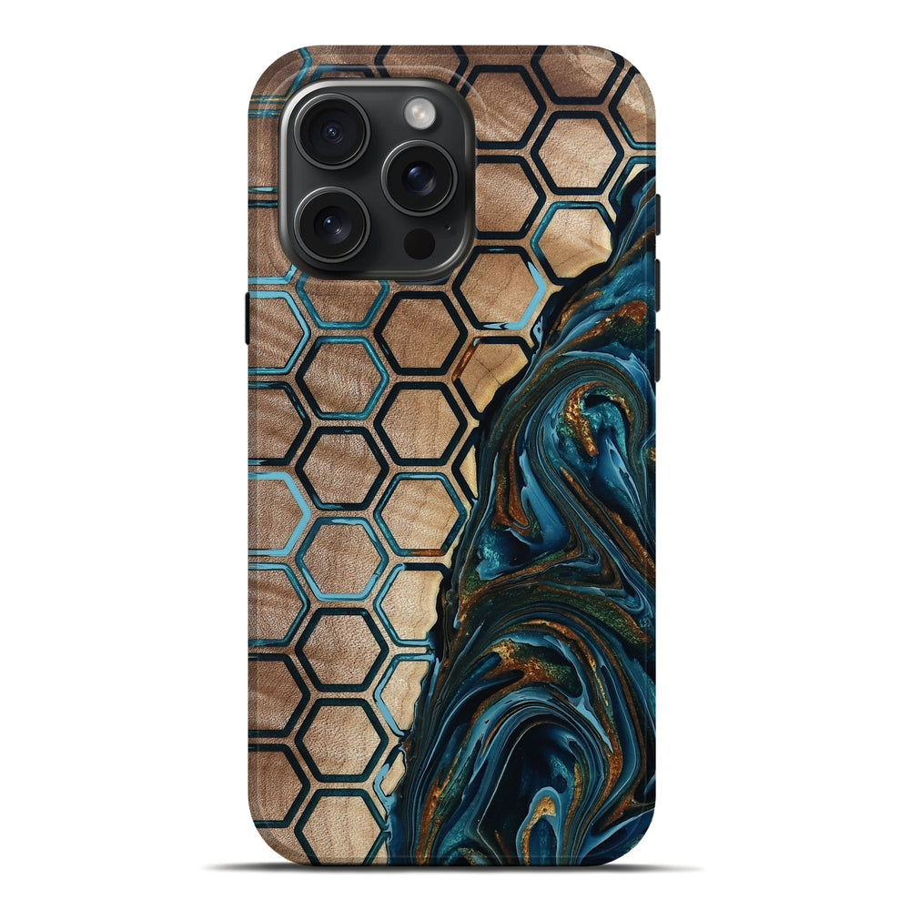 Our Live Edge cases are made from an amazing combination of stabilized wood burl and colored resin. Our stabilization process hardens the wood to protect against cracks and breaks. We do every step of the process at our shop in Northern Indiana. Perfectly fits the iPhone 16 Pro Max.