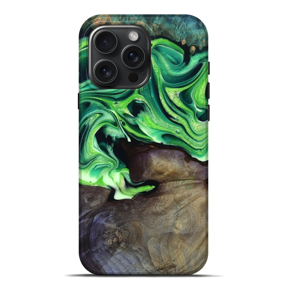 Our Live Edge cases are made from an amazing combination of stabilized wood burl and colored resin. Our stabilization process hardens the wood to protect against cracks and breaks. We do every step of the process at our shop in Northern Indiana. Perfectly fits the iPhone 16 Pro Max.