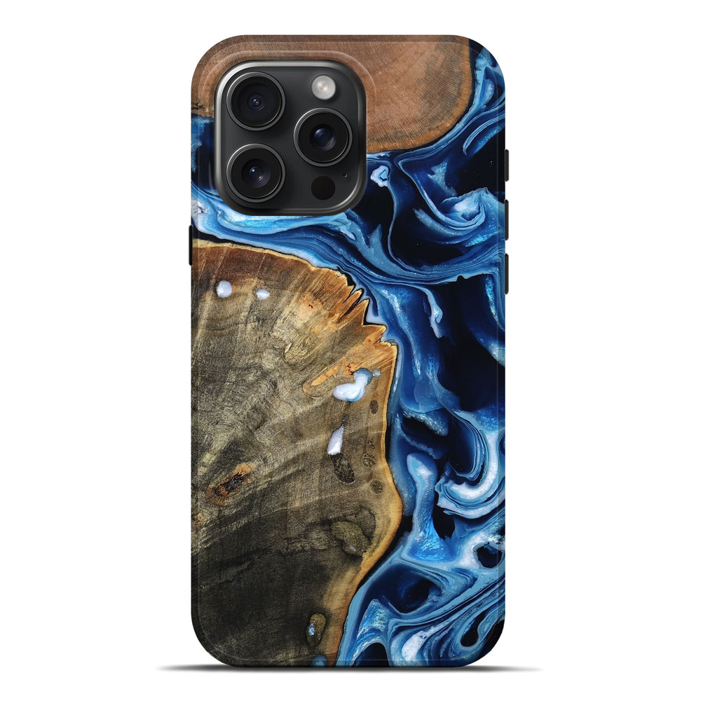Our Live Edge cases are made from an amazing combination of stabilized wood burl and colored resin. Our stabilization process hardens the wood to protect against cracks and breaks. We do every step of the process at our shop in Northern Indiana. Perfectly fits the iPhone 16 Pro Max.