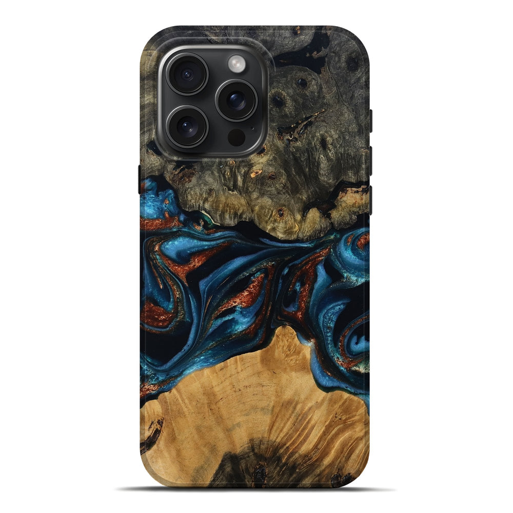 Our Live Edge cases are made from an amazing combination of stabilized wood burl and colored resin. Our stabilization process hardens the wood to protect against cracks and breaks. We do every step of the process at our shop in Northern Indiana. Perfectly fits the iPhone 16 Pro Max.