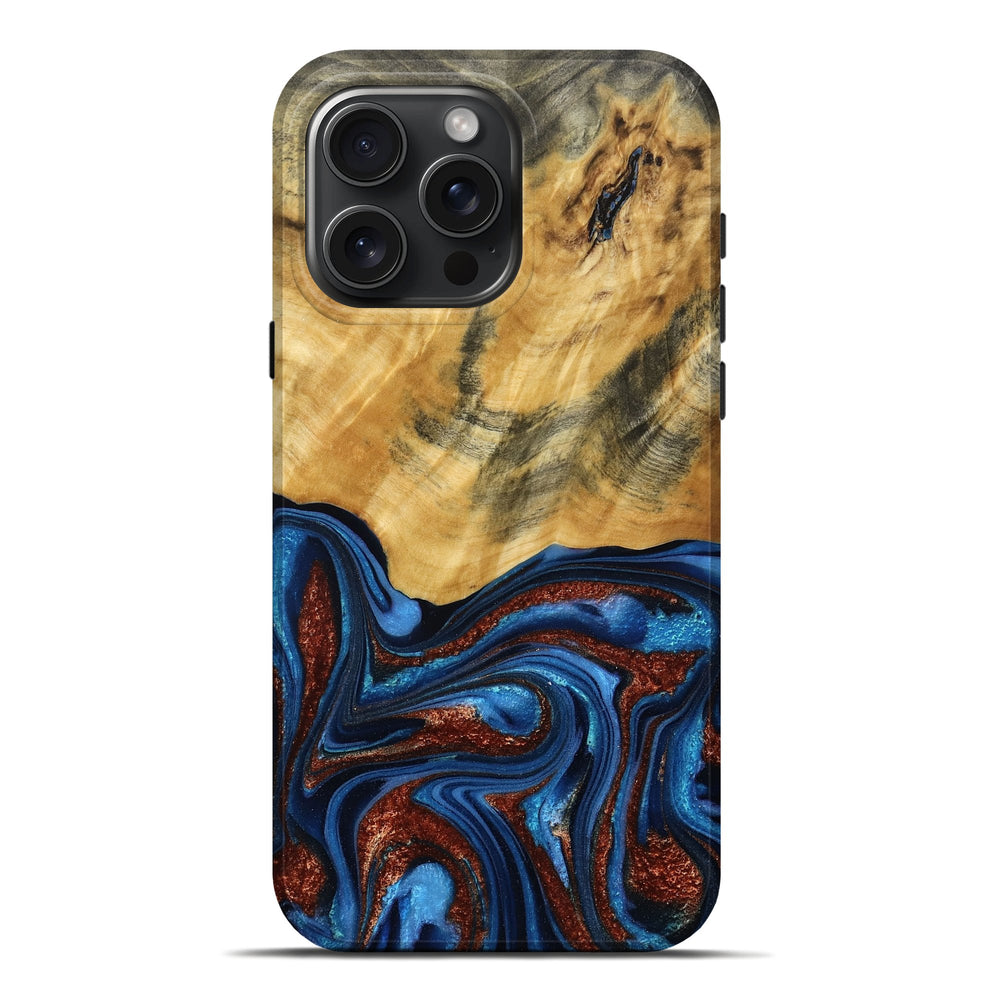 Our Live Edge cases are made from an amazing combination of stabilized wood burl and colored resin. Our stabilization process hardens the wood to protect against cracks and breaks. We do every step of the process at our shop in Northern Indiana. Perfectly fits the iPhone 16 Pro Max.