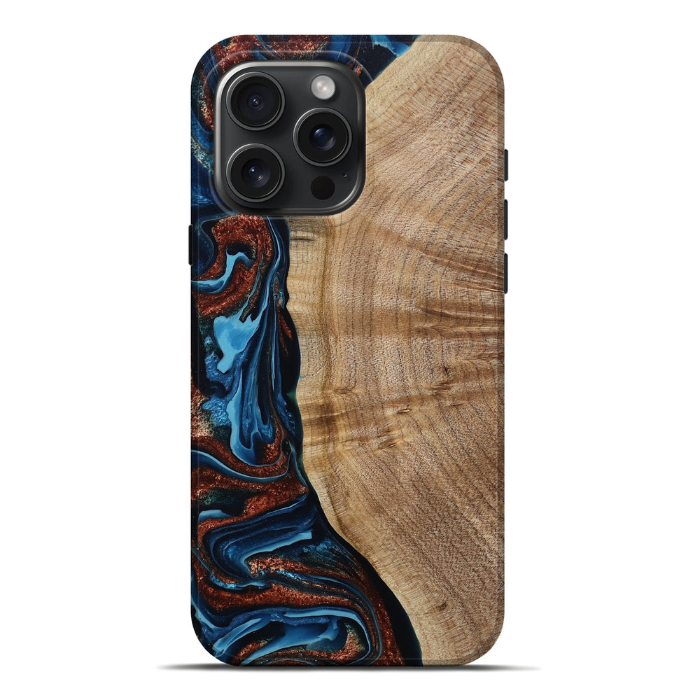 Our Live Edge cases are made from an amazing combination of stabilized wood burl and colored resin. Our stabilization process hardens the wood to protect against cracks and breaks. We do every step of the process at our shop in Northern Indiana. Perfectly fits the iPhone 16 Pro Max.