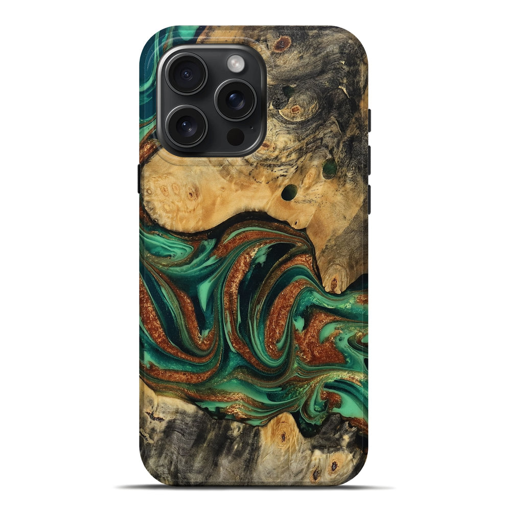 Our Live Edge cases are made from an amazing combination of stabilized wood burl and colored resin. Our stabilization process hardens the wood to protect against cracks and breaks. We do every step of the process at our shop in Northern Indiana. Perfectly fits the iPhone 16 Pro Max.