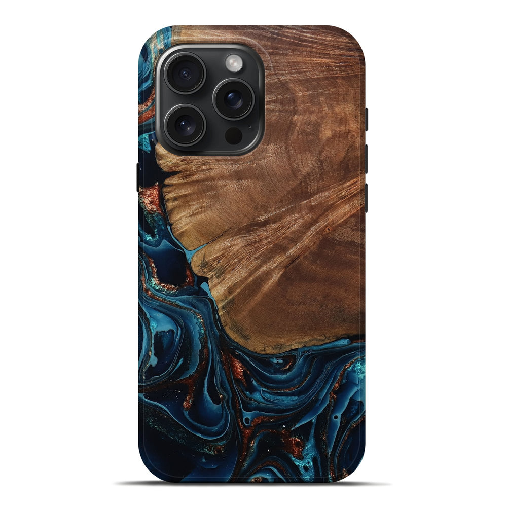 Our Live Edge cases are made from an amazing combination of stabilized wood burl and colored resin. Our stabilization process hardens the wood to protect against cracks and breaks. We do every step of the process at our shop in Northern Indiana. Perfectly fits the iPhone 16 Pro Max.