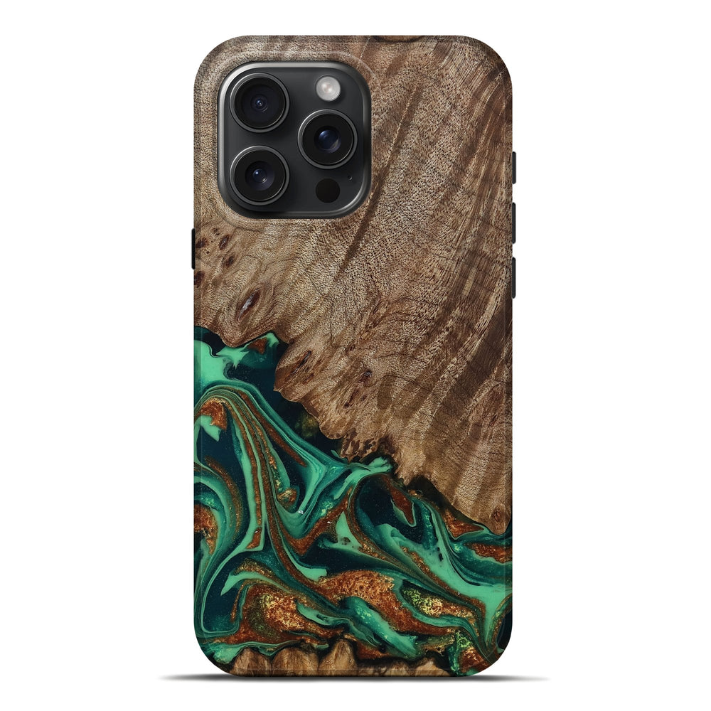 Our Live Edge cases are made from an amazing combination of stabilized wood burl and colored resin. Our stabilization process hardens the wood to protect against cracks and breaks. We do every step of the process at our shop in Northern Indiana. Perfectly fits the iPhone 16 Pro Max.