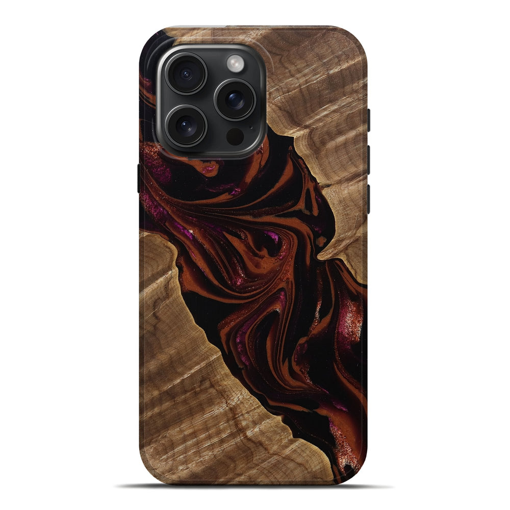 Our Live Edge cases are made from an amazing combination of stabilized wood burl and colored resin. Our stabilization process hardens the wood to protect against cracks and breaks. We do every step of the process at our shop in Northern Indiana. Perfectly fits the iPhone 16 Pro Max.