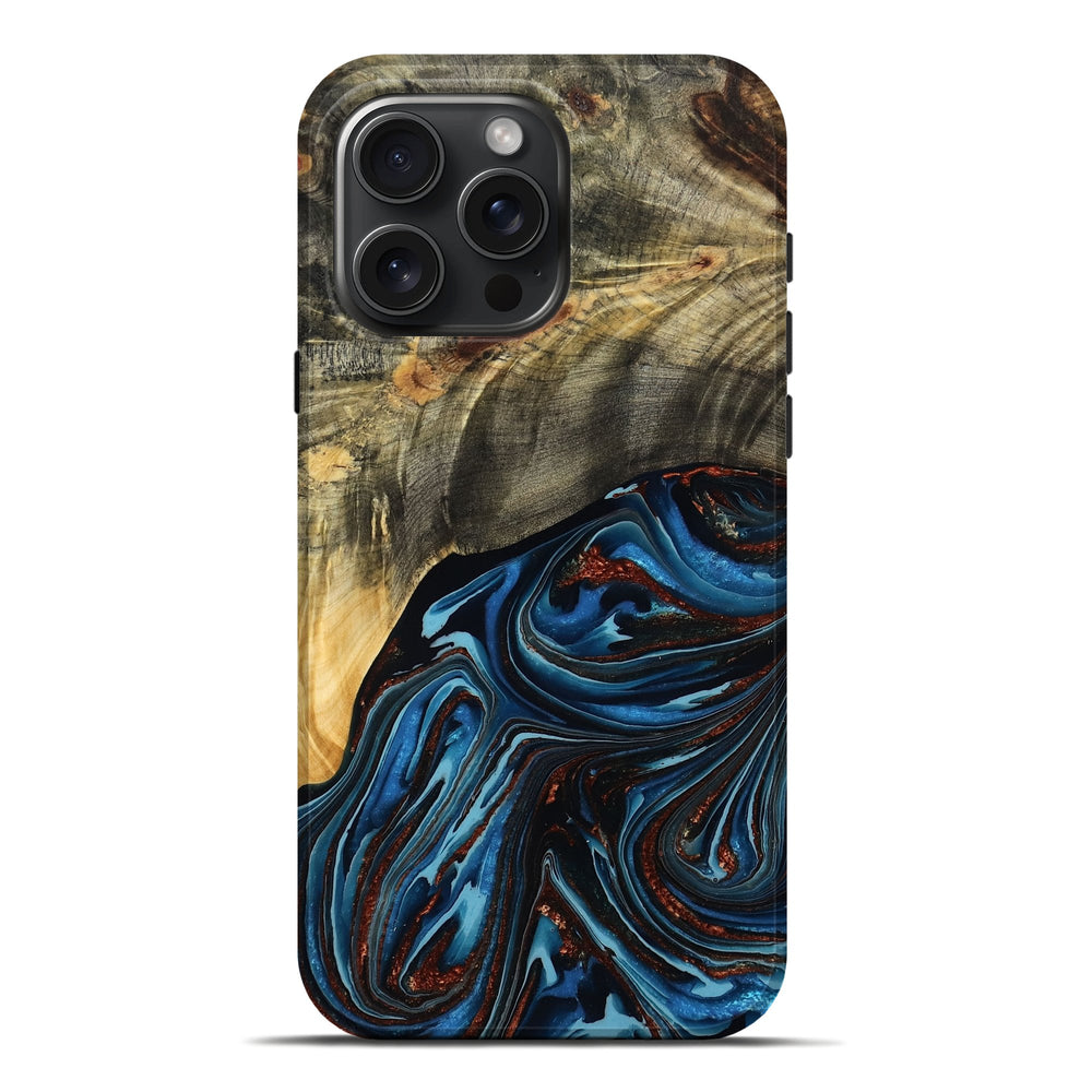 Our Live Edge cases are made from an amazing combination of stabilized wood burl and colored resin. Our stabilization process hardens the wood to protect against cracks and breaks. We do every step of the process at our shop in Northern Indiana. Perfectly fits the iPhone 16 Pro Max.