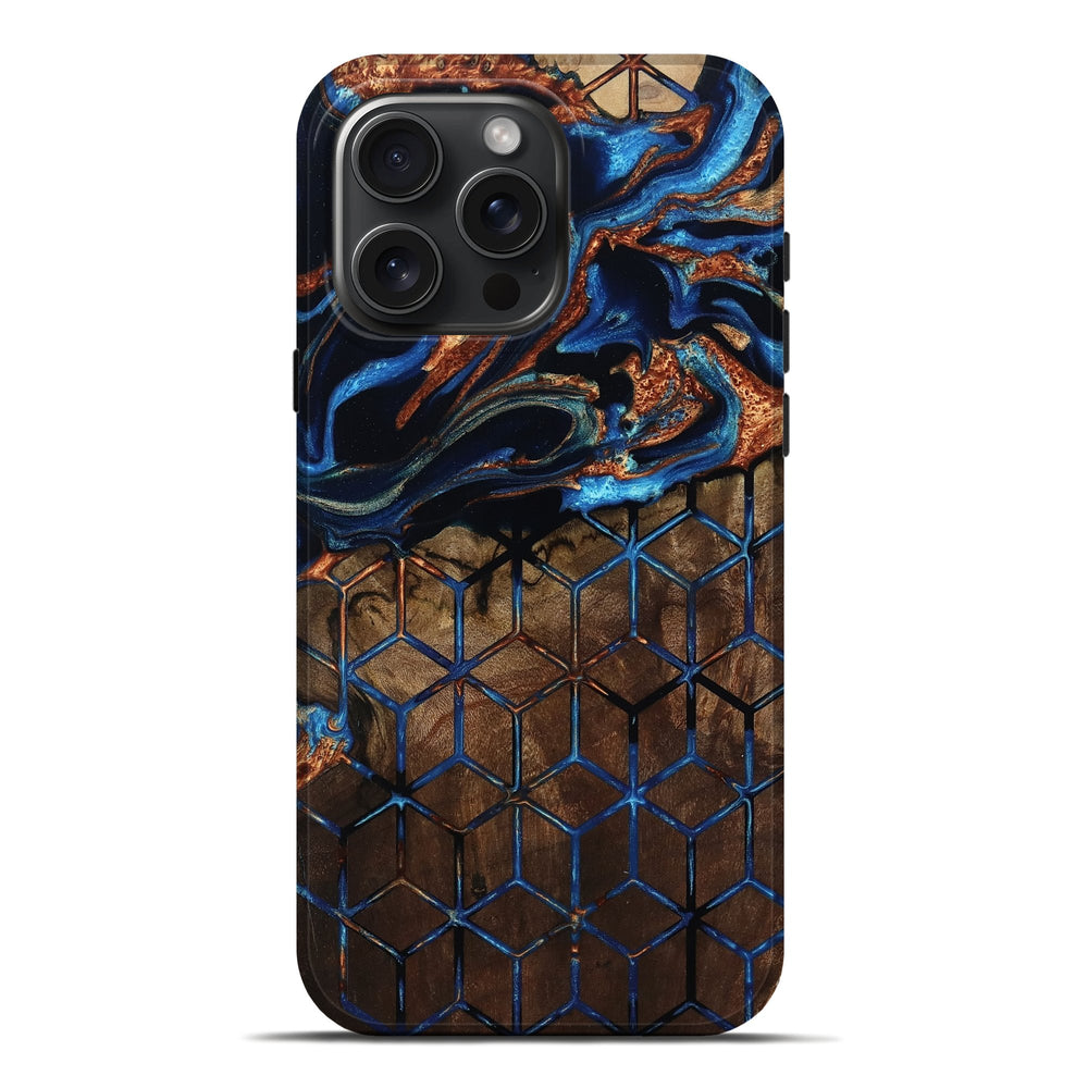 Our Live Edge cases are made from an amazing combination of stabilized wood burl and colored resin. Our stabilization process hardens the wood to protect against cracks and breaks. We do every step of the process at our shop in Northern Indiana. Perfectly fits the iPhone 16 Pro Max.