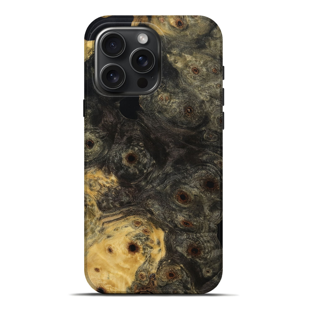 Our Live Edge cases are made from an amazing combination of stabilized wood burl and colored resin. Our stabilization process hardens the wood to protect against cracks and breaks. We do every step of the process at our shop in Northern Indiana. Perfectly fits the iPhone 16 Pro Max.