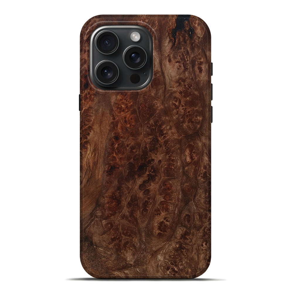 Our Live Edge cases are made from an amazing combination of stabilized wood burl and colored resin. Our stabilization process hardens the wood to protect against cracks and breaks. We do every step of the process at our shop in Northern Indiana. Perfectly fits the iPhone 16 Pro Max.
