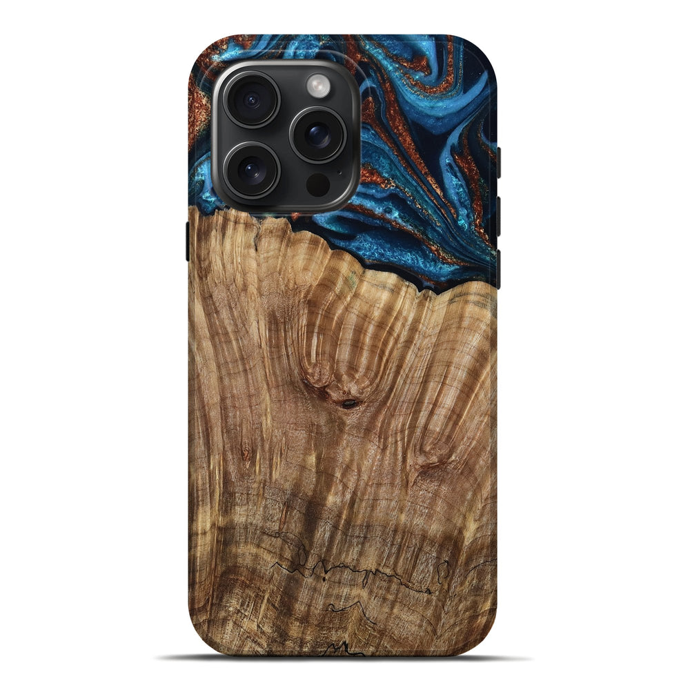 Our Live Edge cases are made from an amazing combination of stabilized wood burl and colored resin. Our stabilization process hardens the wood to protect against cracks and breaks. We do every step of the process at our shop in Northern Indiana. Perfectly fits the iPhone 16 Pro Max.